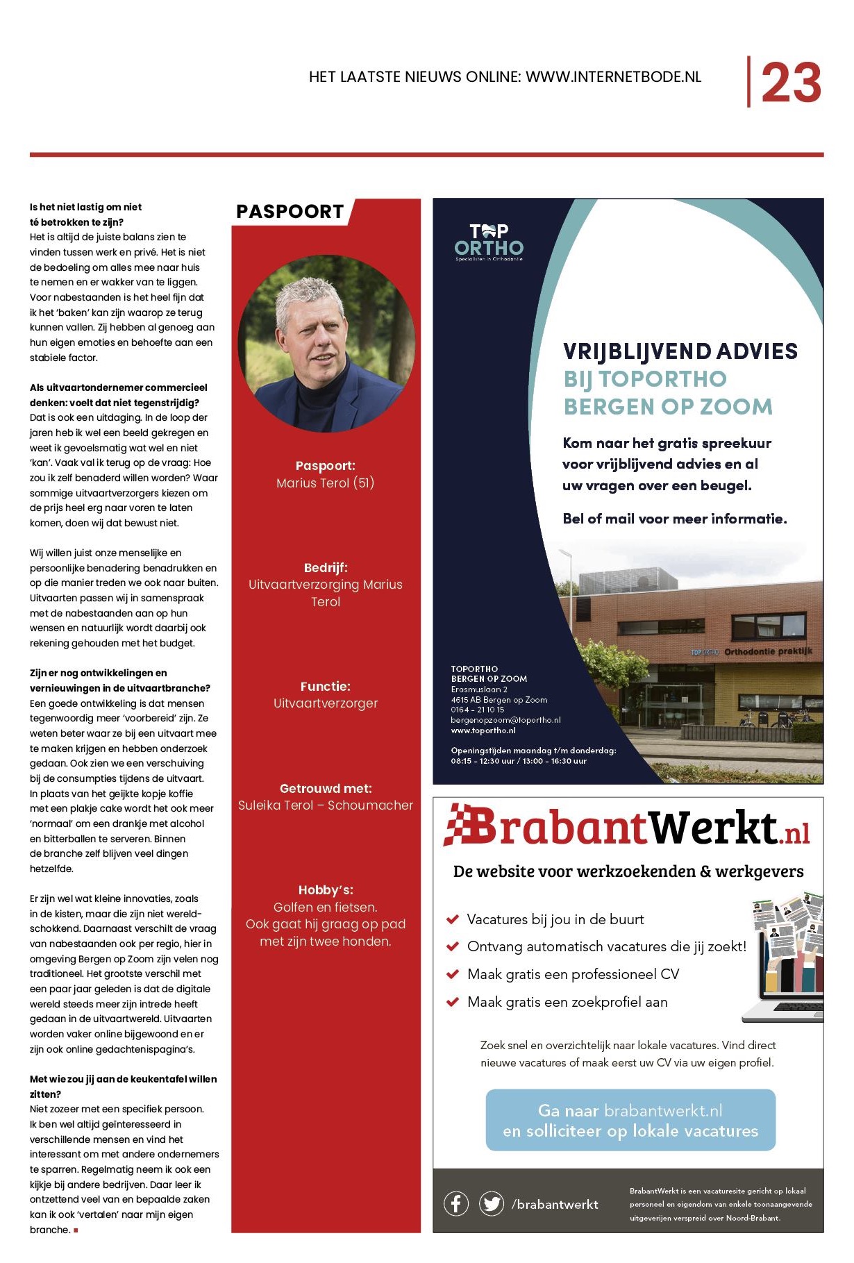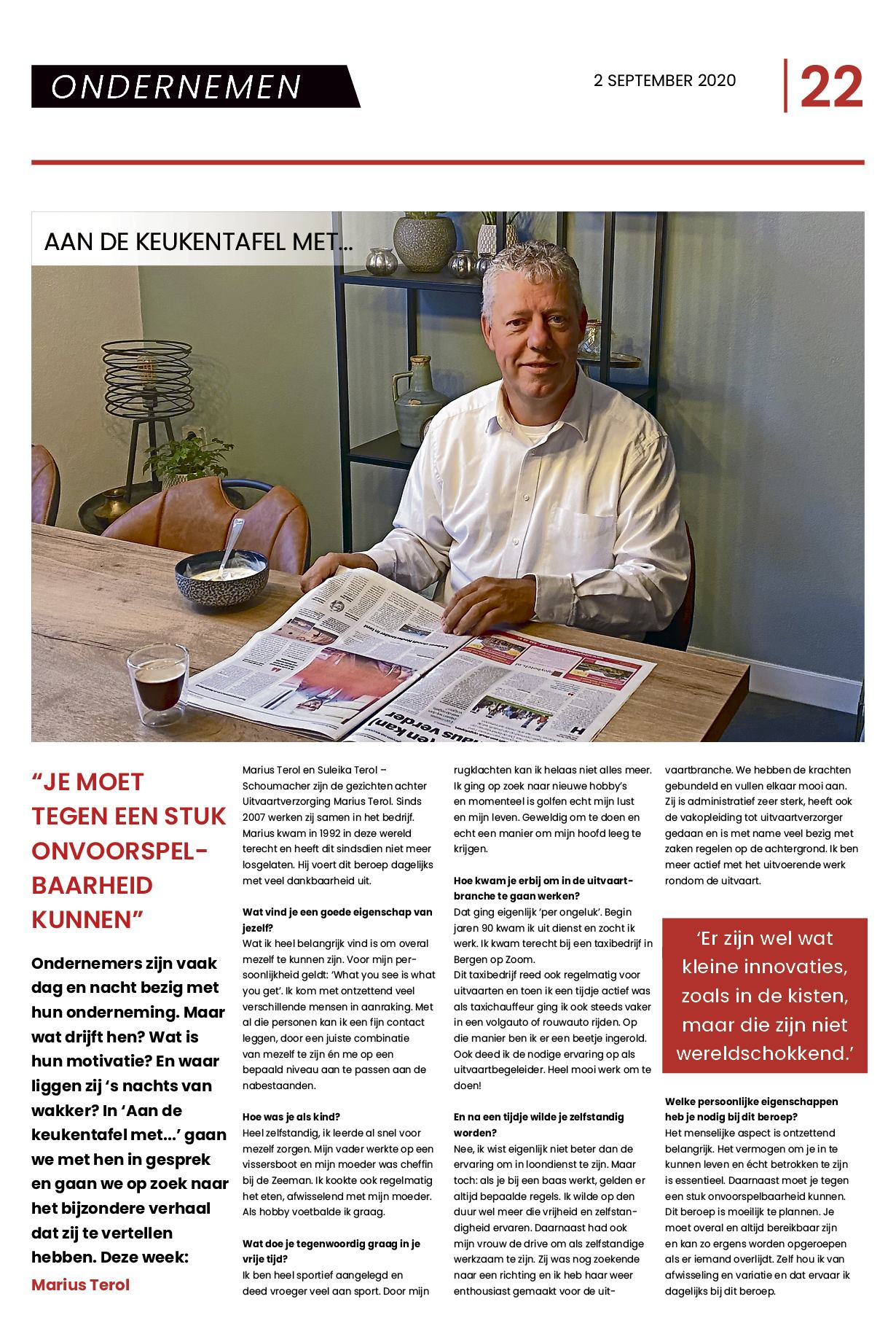 Afgelopen week werd Marius benaderd door Gertrude Snoei van de Bode. Om de week schrijft zij een artikel over de persoon achter de ondernemer en zij vond het leuk om ditmaal eens een gesprekje met hem te hebben.